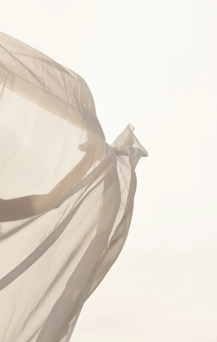 Most people imagine this fabric as a curtain: Heavy, Impenetrable, Something to tear through or “lift” in order to see beyond it, but it’s not like that at all. I see it as porous, like lace. It reminds me of light passing through a window and it provides messages through its openings and through its strings. It can tangle like a thread connecting pieces of the seen and unseen together, pulls and distorts time, and shapes everything around it, often distorting space. Like the ocean in Moana — it has its own dance, its own way of moving things into place at exactly the right moment.